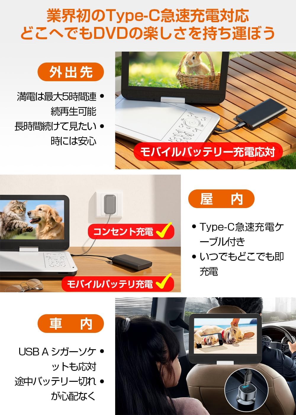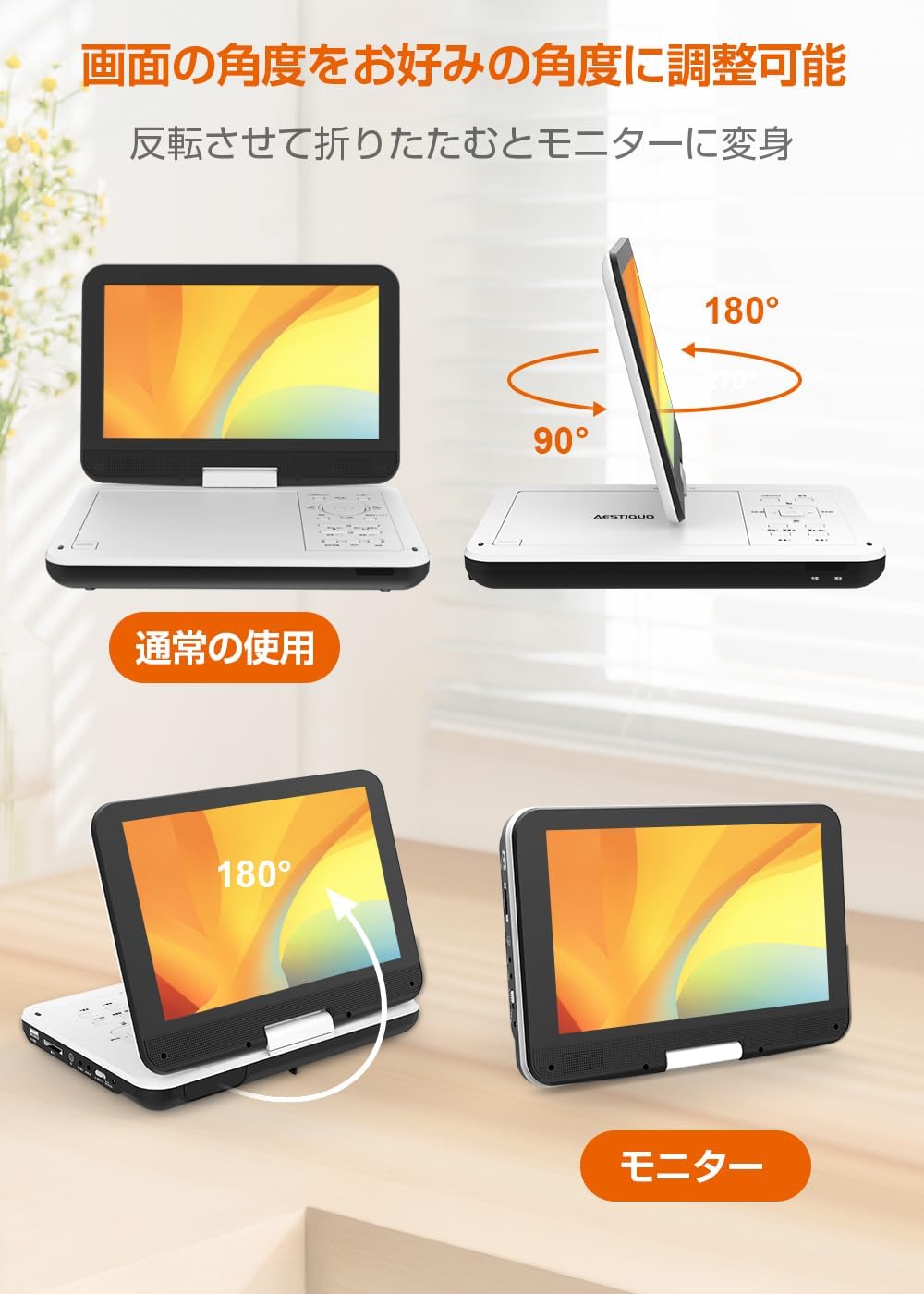 Aestiquo Tragbarer DVD-Player PD101 | Schnellladefunktion (Typ C) / 12,5-Zoll-Bildschirm mit Augenschutzmodus / Bis zu 5 Stunden Wiedergabezeit